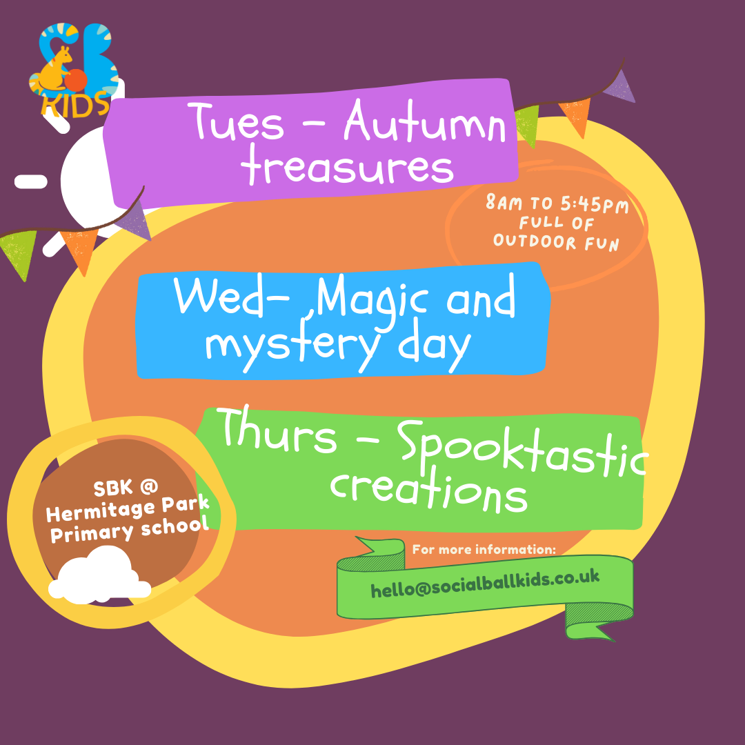 Get ready to have a great October holiday club with us,  Email us and book in or for more information to Hello@socialballkids.co.uk